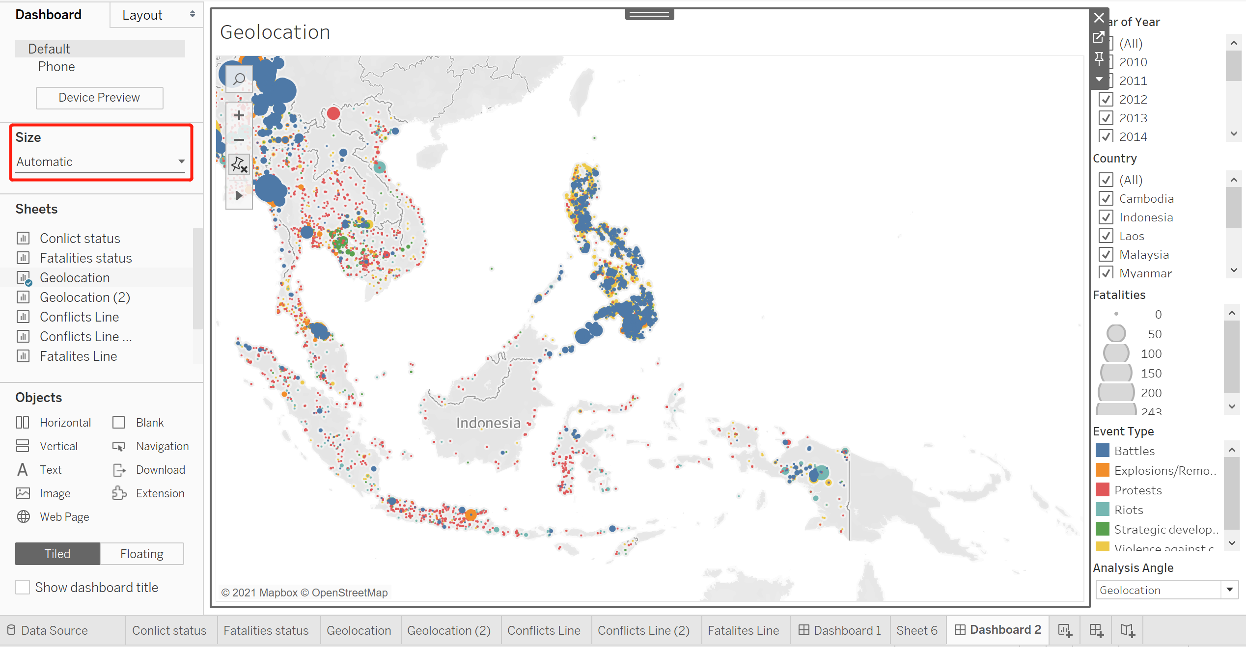 3.4 Three filters ‘Year’, ‘Event Type’, ‘Country’ give reader free space to choose what they want to analysis.