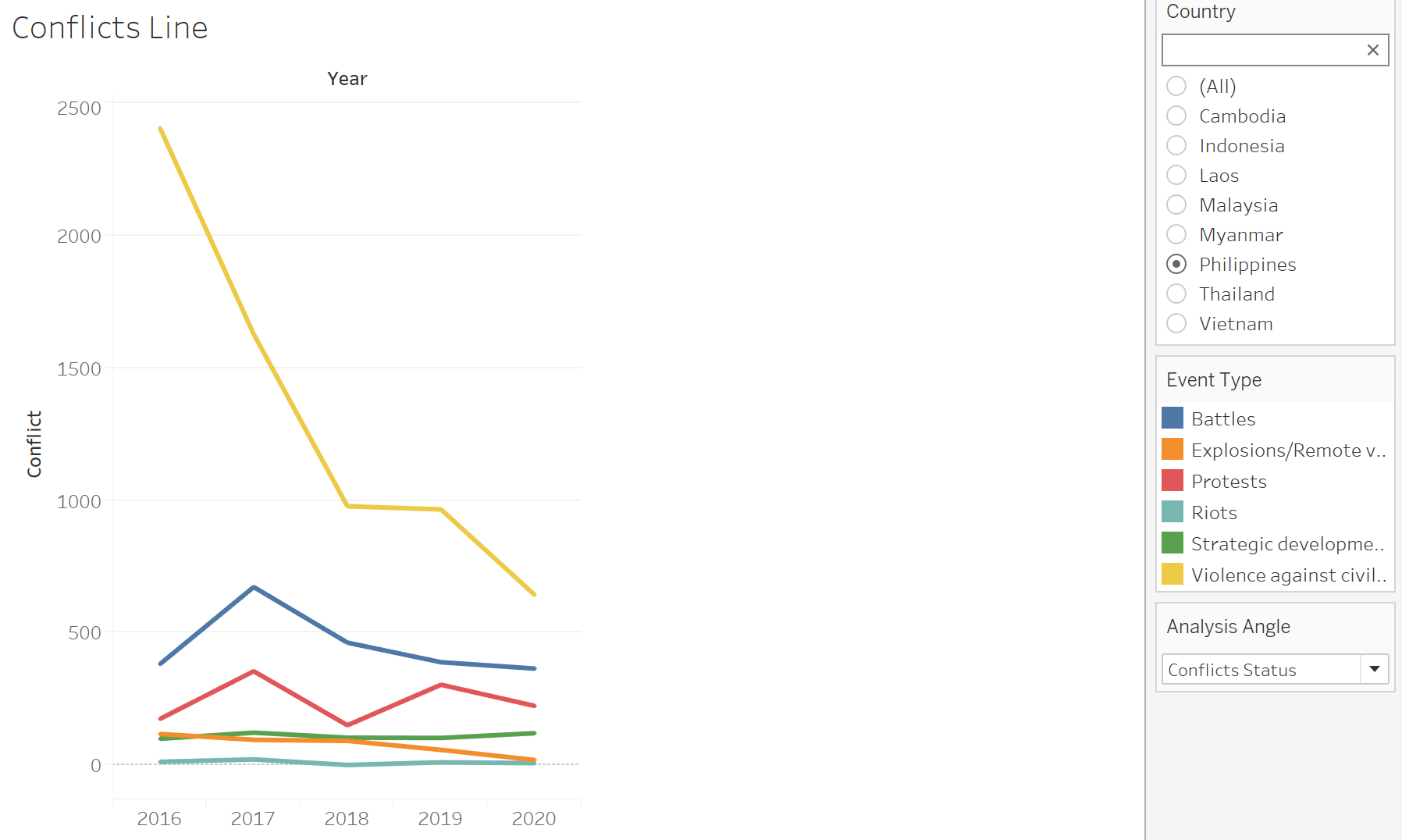 However, from the bar below, we can see that ‘Violence against civilians’ in Philippines has a descending trend these years.